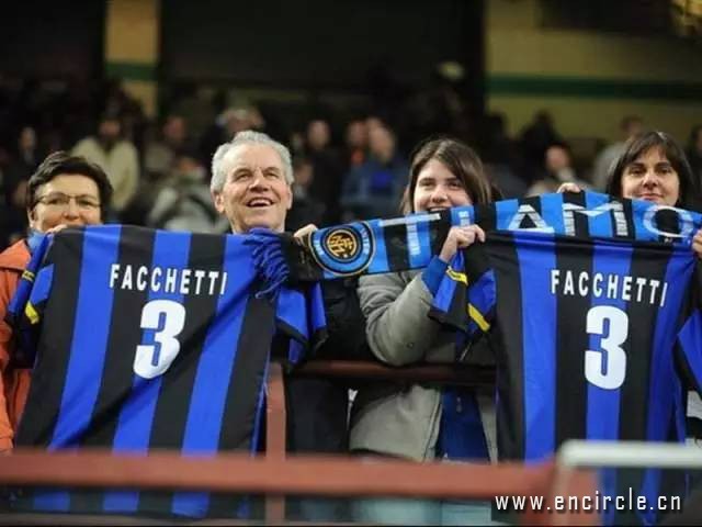 而在米兰城的另外一边,则是一位蓝黑色的传奇。这位已故的蓝黑战士,将他的传奇一生毫无保留地献给了国际米兰还有意大利国家队。法切蒂约190厘米的身高和快速奔跑的能力颠覆了当时足球界对边后卫的固有印象,他擅长将抢断的皮球径自带入前半场,并经常参与进攻,是足球界一大创举。与同城对手一样,国米也将3号战袍封存,它也将在天堂永久地陪伴这位传奇的后卫。
