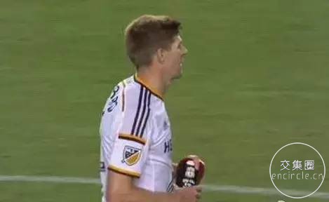 杰拉德在洛杉矶银河队穿戴的利物浦护腿板